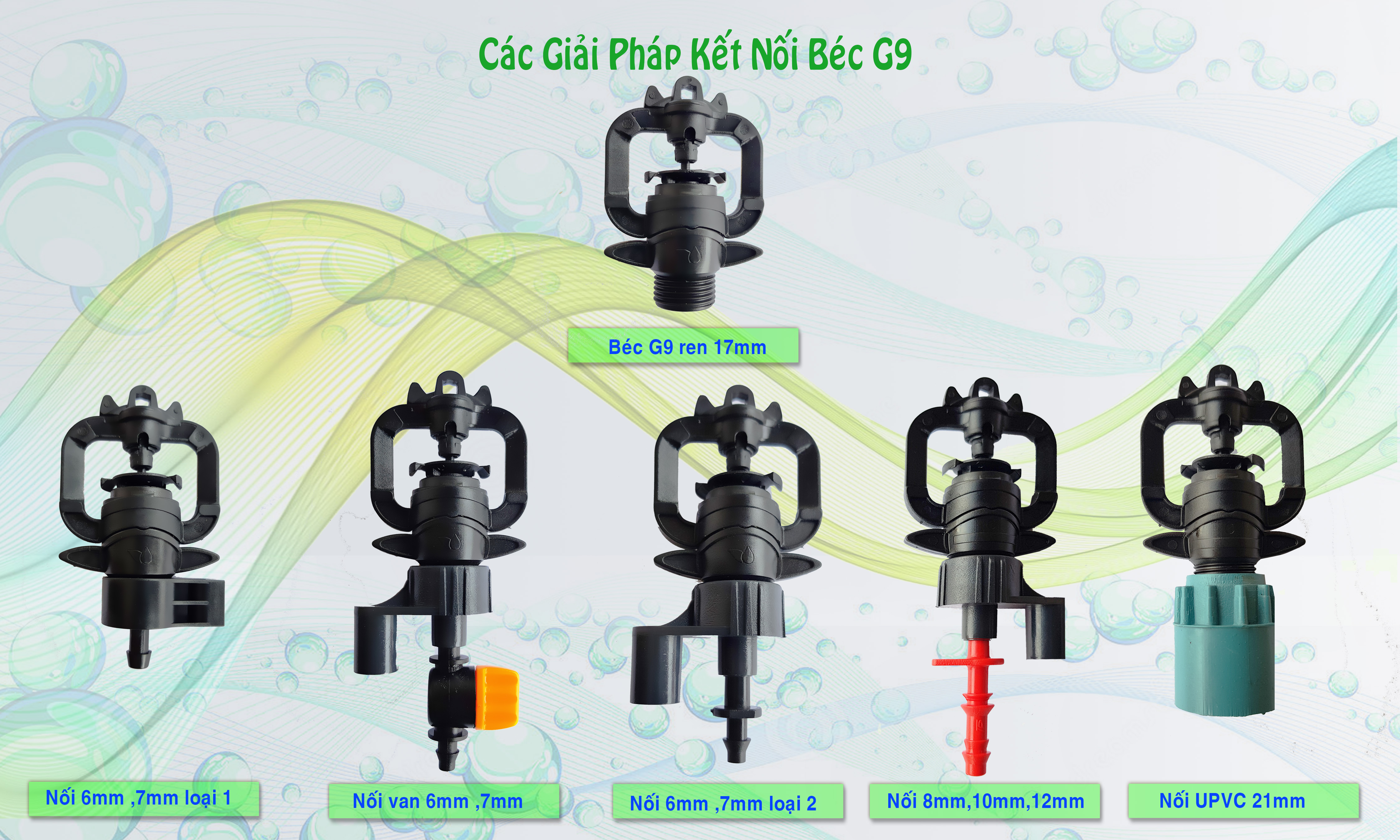 Các kiểu kết nối béc tưới bù áp G9-V2 90l/h
