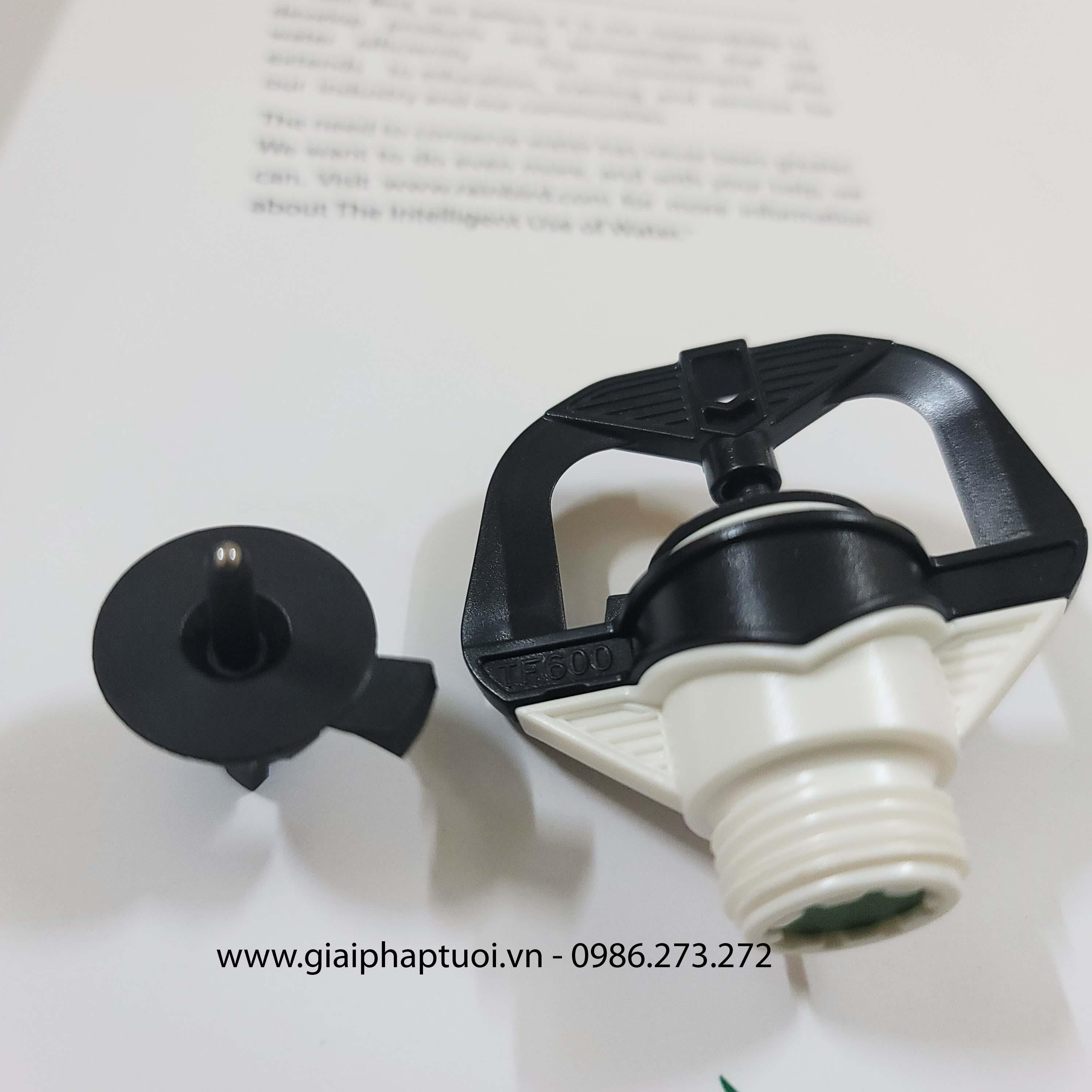 - Giá béc tưới TF600 roto bi inox không bù áp: 9.500 vnđ/cái (lưu lượng 55l/h, 75l/h, 95l/h, 150l/h, 250l/h)