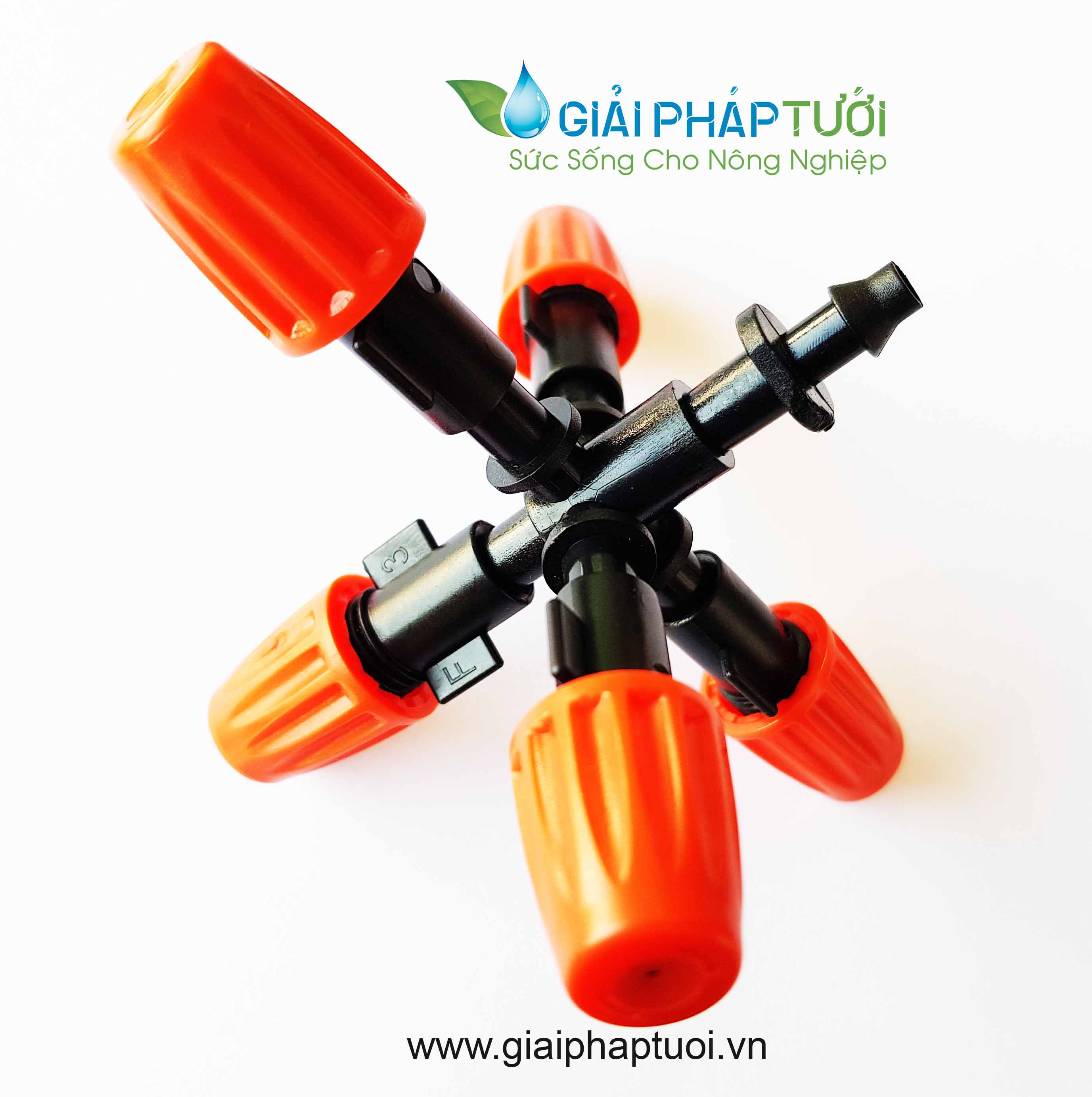 Bộ béc phun sương cam 5 hướng ra nối 6mm gồm: