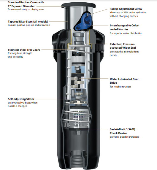 Thông số kĩ thuật của béc tưới popup rainbird roto falcon 6504pc