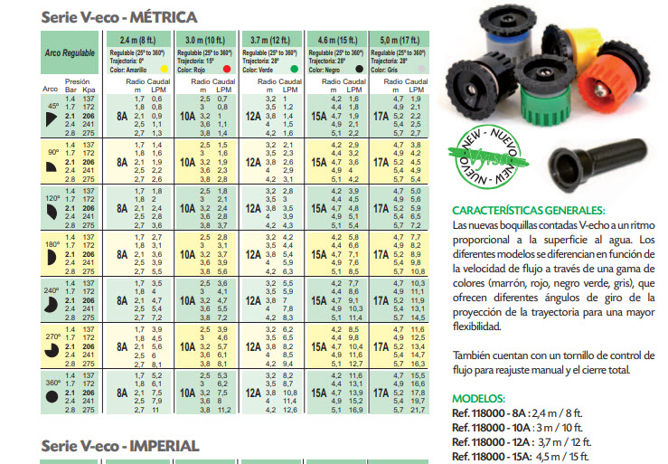 Một số thông tin mô tả đầu béc phun xòe Spain 8A 10A 12A 15A 17A