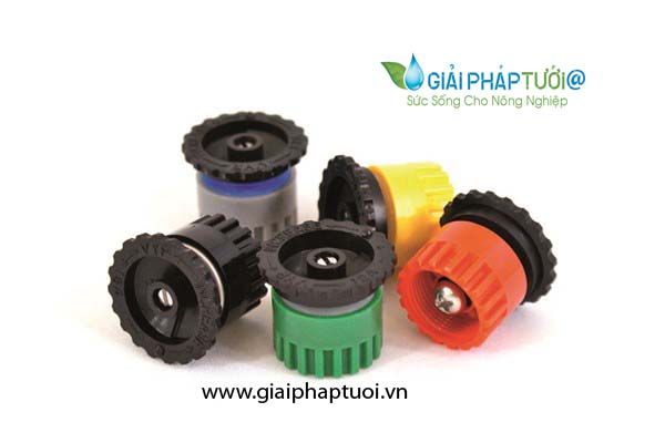 Đầu xòe tưới có thể ứng dụng tưới tự động cho các khu vực tưới có địa hình đồi dốc, các luống hoa với hình dạng đặc biệt, các góc tưới từ hẹp cho đến rộng, các mảng cỏ…. Với nhiều đầu xòe được phân biệt bởi các màu sắc khác nhau ( vàng, đỏ, đen, xanh lá cây, xám) sẽ giúp người lắp đặt có thể đạt được bất kỳ góc tưới nào để có thể che phủ tối đa khu vực cần tưới. Đầu xòe có thể điều chỉnh một cách dễ dàng cho bất kỳ góc tưới nào từ 0 độ - 360 độ