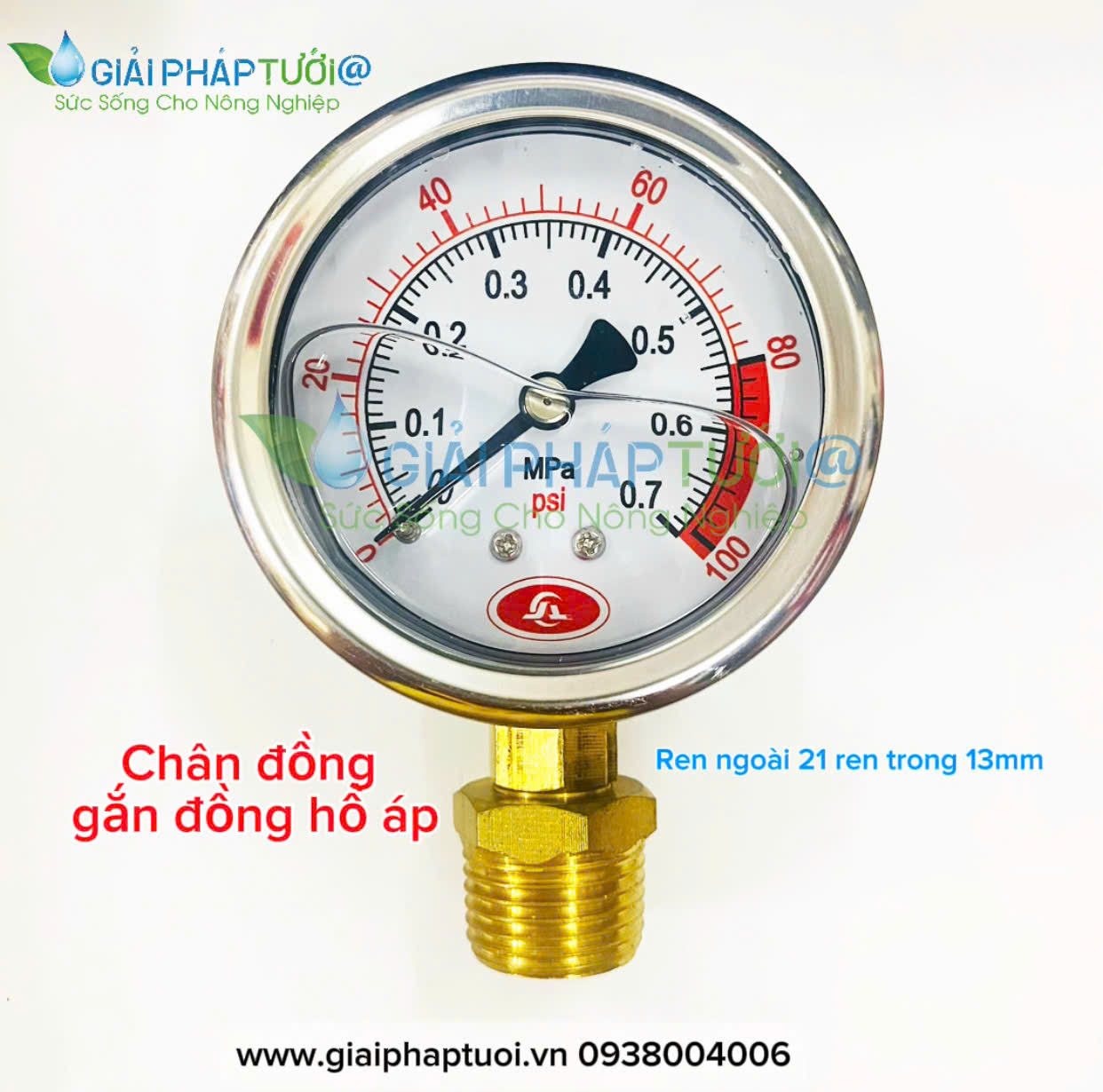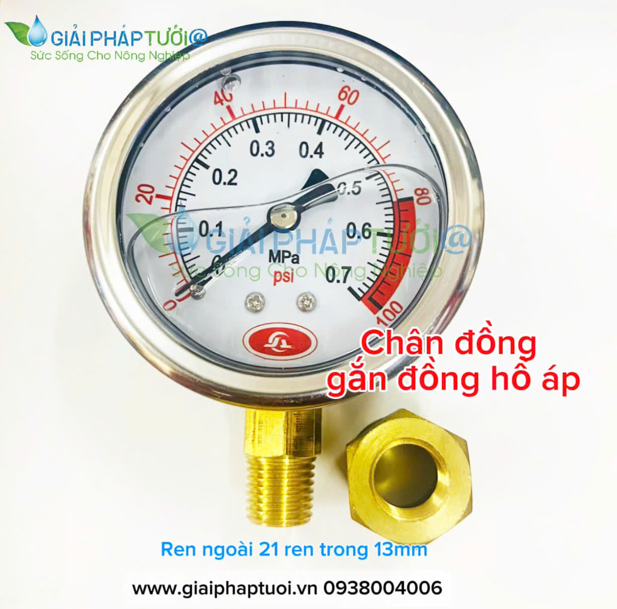 Dùng để gắn đồng hồ đo áp lực với kết nối ren ngoài 21mm gắn với ống pvc và một đầu ren trong 13mm gắn với đồng hồ áp