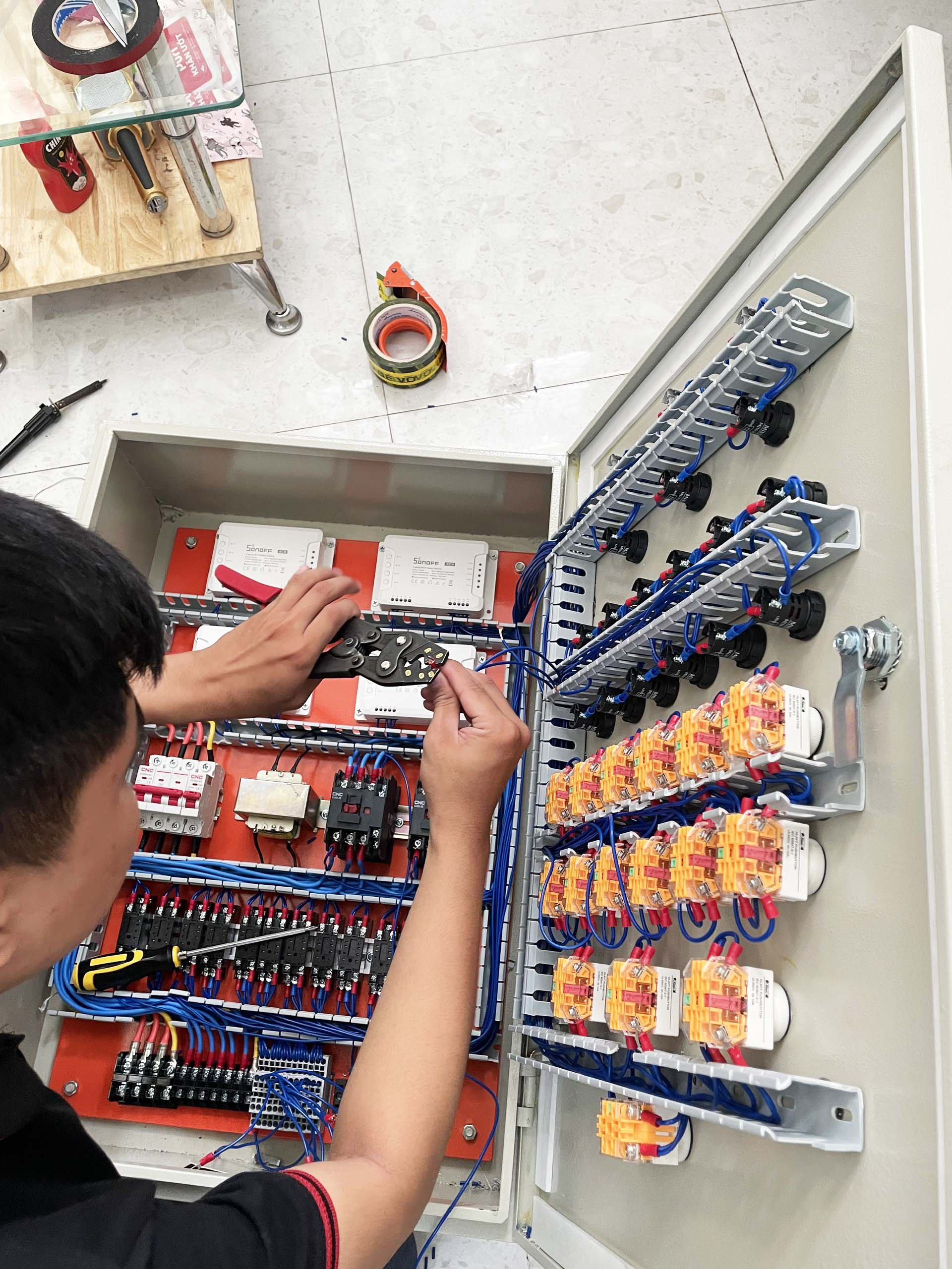 Tủ được đấu hoàn chỉnh theo tiêu chuẩn công nghiệp, bấm đầu có an toàn, đầu ra kí hiệu rõ ràng, dễ sử dụng