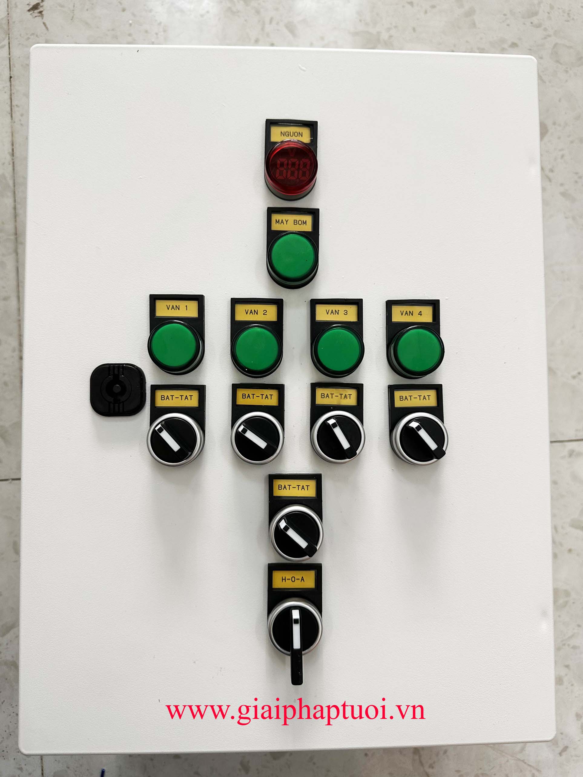 - Chế độ bật tay: Điều khiển bật tắt từng van tùy ý tại nút ngoài mặt tủ