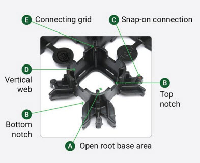 - Trên và dưới các khía bên (B) cho phép rễ cây và thân cây phát triển không hạn chế