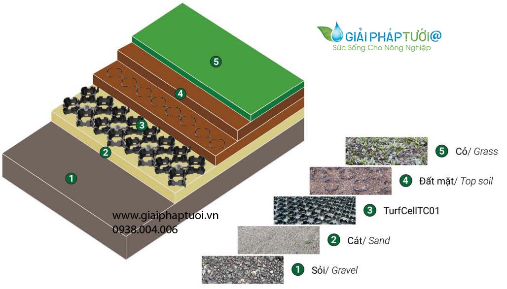 - Sử dụng để trồng cỏ thay thế cho đường nhựa hoặc bê tông. Trồng cỏ, lát sỏi, đá, cát trong bãi đậu xe ô tô, lối đi cho xe siêu trọng