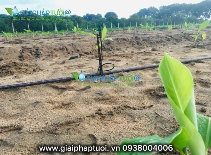 Tưới cho cây chuối bằng béc phun mưa 360 độ
