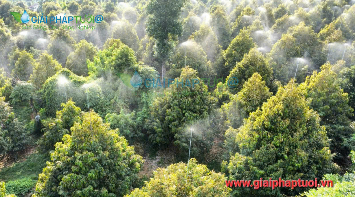 2. Ngăn ngừa khô hạn: Trong mùa khô, cây sầu riêng rất dễ bị thiếu nước, dẫn đến tình trạng khô hạn. Béc tưới ngọn sầu riêng giúp cung cấp nước đều đặn, ngăn ngừa tình trạng cây bị stress do thiếu nước.